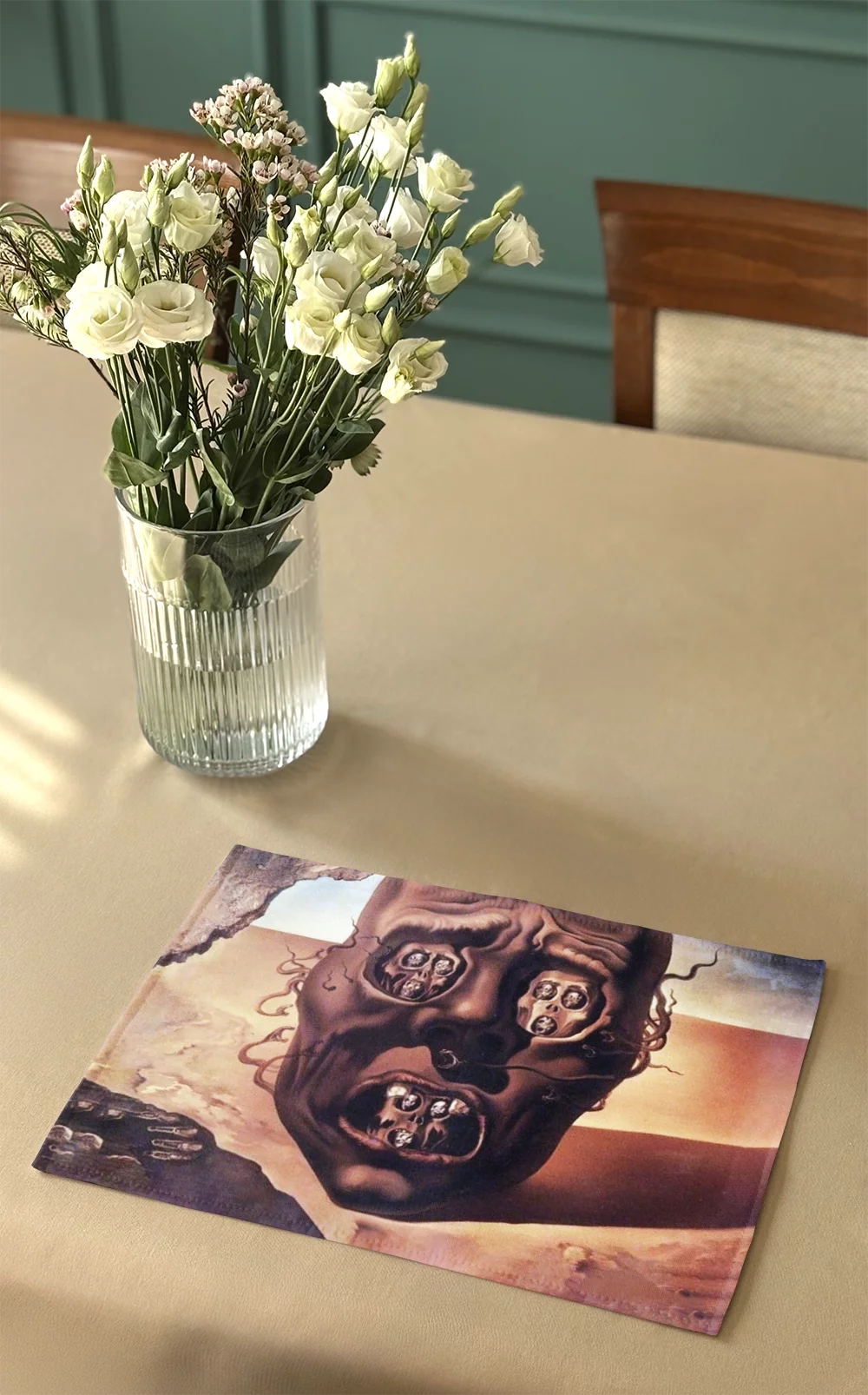 - Materiałowa podkładka na stół o wymiarach 40 x 30 cm. Na podkładce znajduje się obraz: Salvador Dali