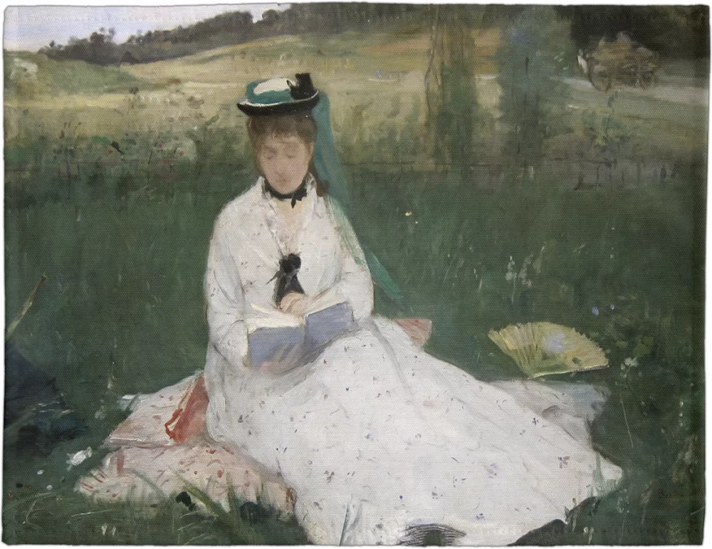 „Czytanie” to intymny portret siostry artystki, Edmy Morisot, pochylonej nad książką. Morisot ukazuje skupienie modelki i atmosferę spokoju, charakterystyczną dla jej impresjonistycznego stylu, który podkreśla relacje rodzinne i kameralne sceny.