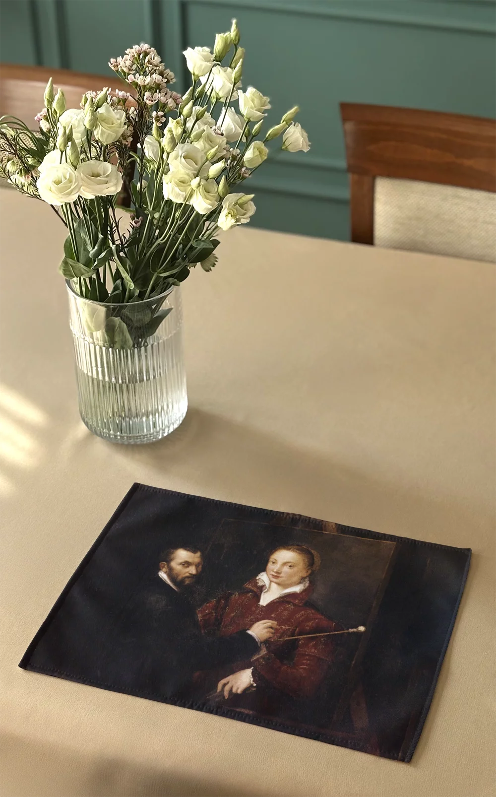 - Materiałowa podkładka na stół o wymiarach 40 x 30 cm. Na podkładce znajduje się obraz: Sofonisba Anguissola