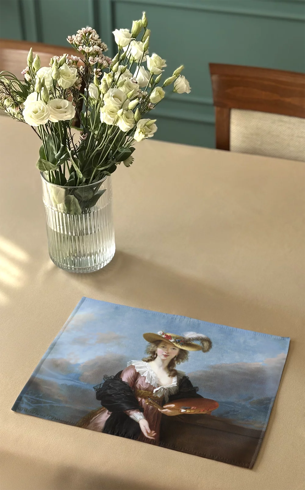 - Materiałowa podkładka na stół o wymiarach 40 x 30 cm. Na podkładce znajduje się obraz: Élisabeth Vigée-Lebrun