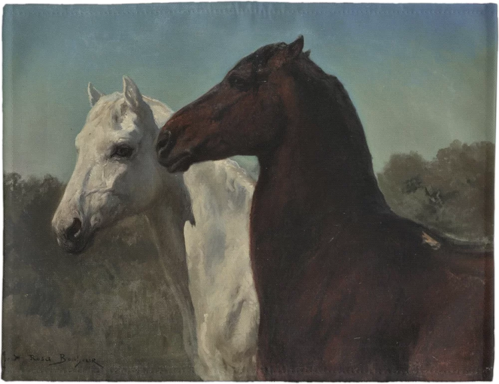 „Dwa konie” (1853) to przykład realistycznego malarstwa Rosy Bonheur, jednej z pierwszych kobiet, które zdobyły międzynarodowe uznanie w sztuce XIX wieku. Artystka wiernie oddaje anatomię i ruch zwierząt, uwypuklając ich siłę i elegancję.