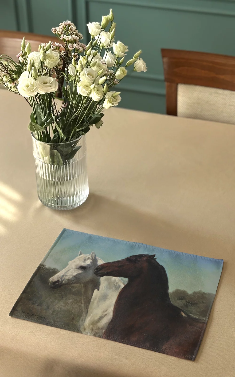 • Materiałowa podkładka na stół o wymiarach 40 x 30 cm. Na podkładce znajduje się obraz: Rosa Bonheur