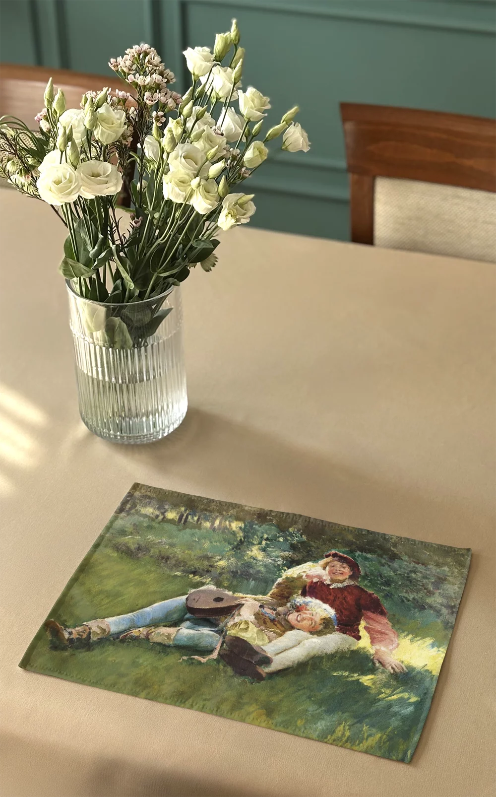 - Materiałowa podkładka na stół o wymiarach 40 x 30 cm. Na podkładce znajduje się obraz: Leon Wyczółkowski