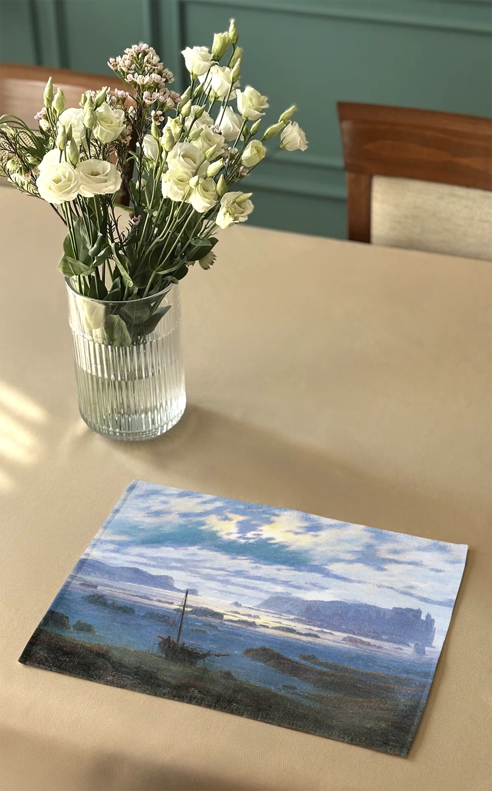 - Materiałowa podkładka na stół o wymiarach 40 x 30 cm. Na podkładce znajduje się obraz: Caspar David Friedrich