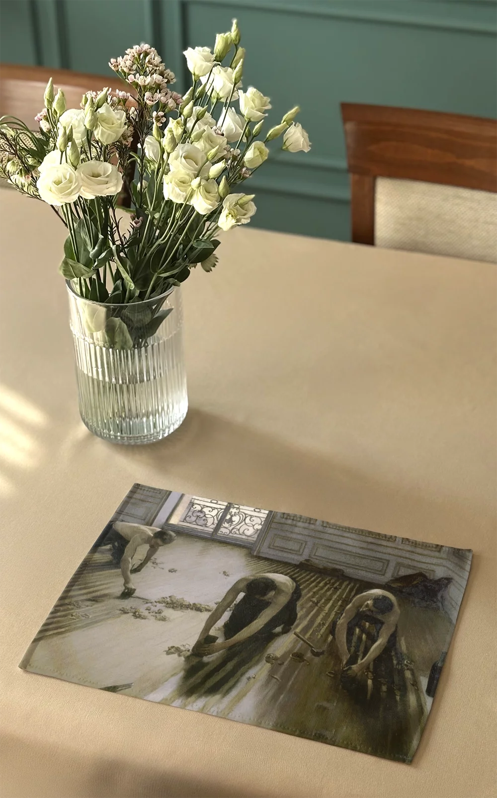 • Materiałowa podkładka na stół o wymiarach 40 x 30 cm. Na podkładce znajduje się obraz: Gustave Caillebotte