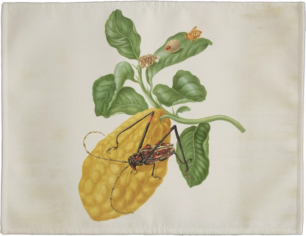 Podkładka na stół Cytryna z gąsienicą małpy i chrząszczem harlekin Maria Sibylla Merian