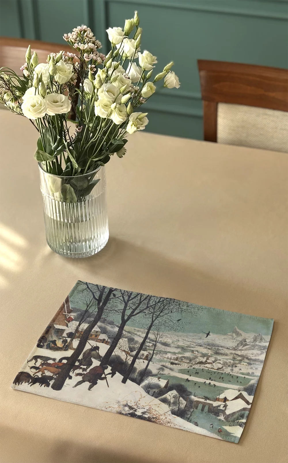- Materiałowa podkładka na stół o wymiarach 40 x 30 cm. Na podkładce znajduje się obraz: Pieter Bruegel starszy