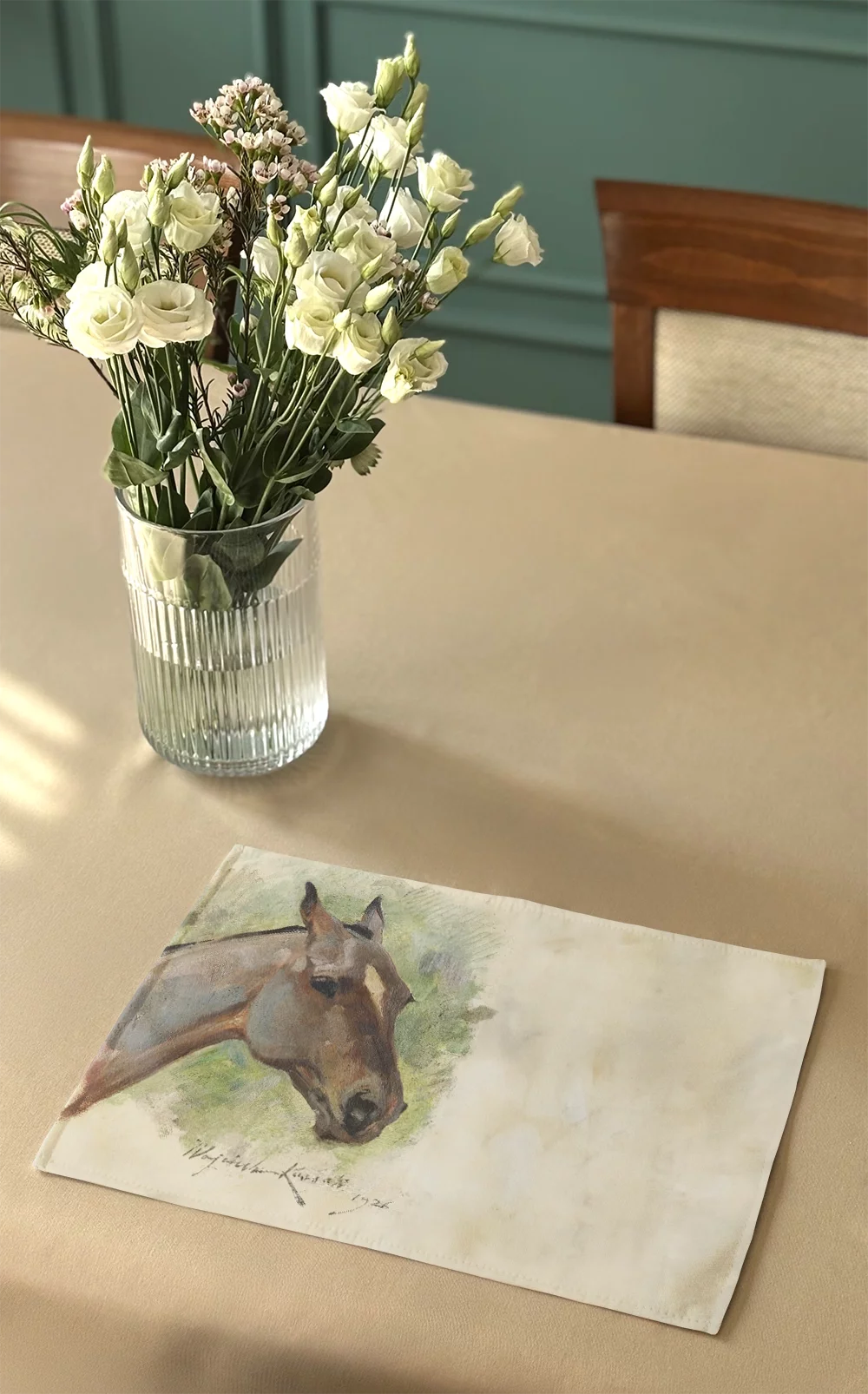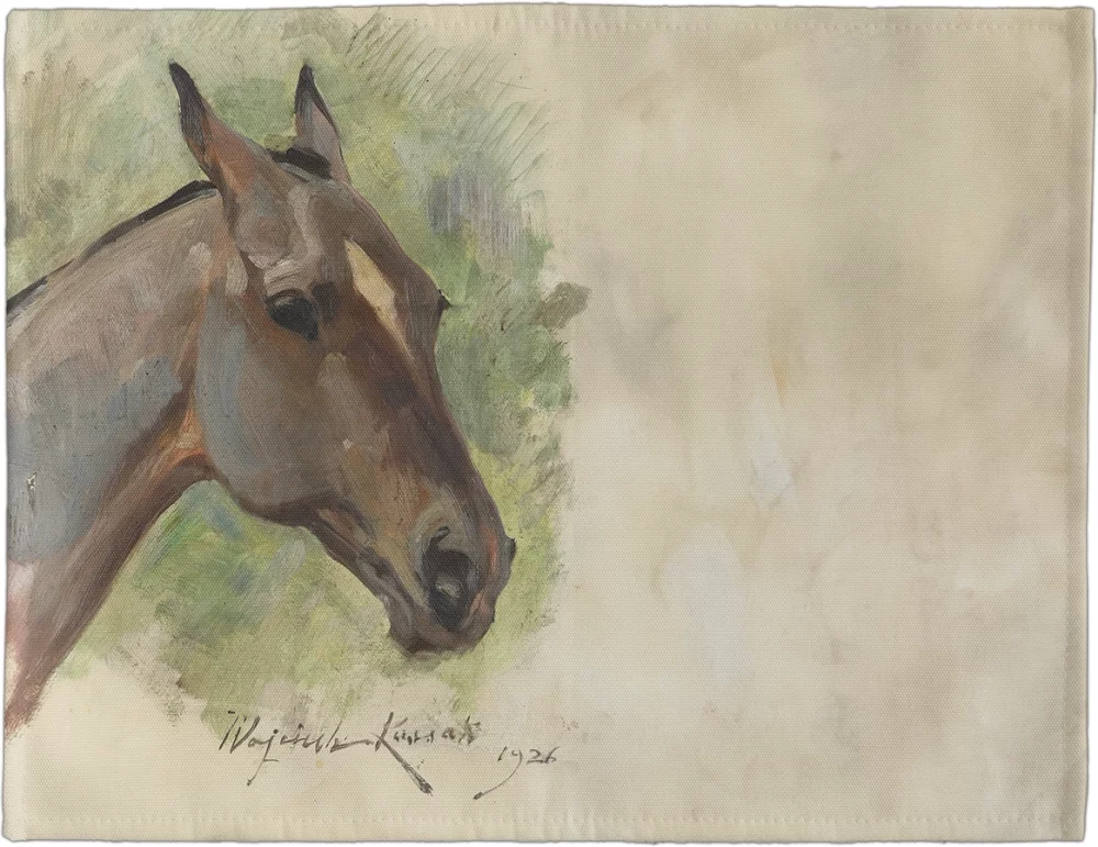 - Materiałowa podkładka na stół o wymiarach 40 x 30 cm. Na podkładce znajduje się obraz: Wojciech Kossak