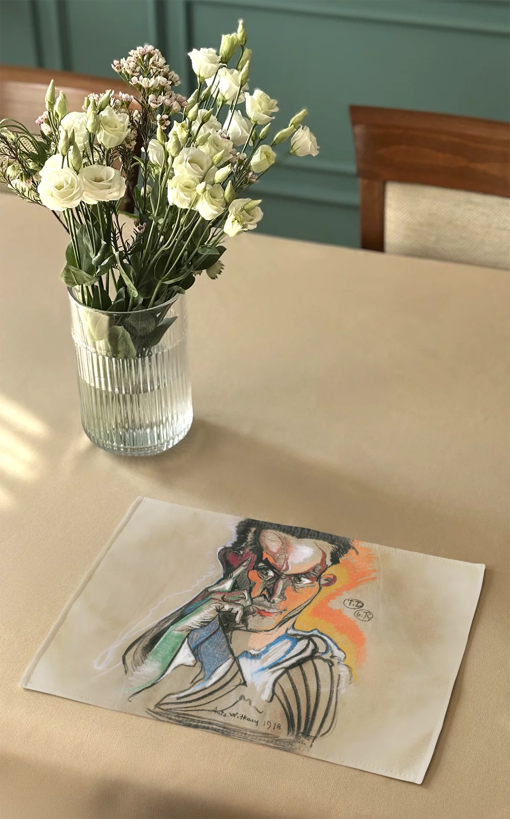 • Materiałowa podkładka na stół o wymiarach 40 x 30 cm. Na podkładce znajduje się obraz: Witkacy