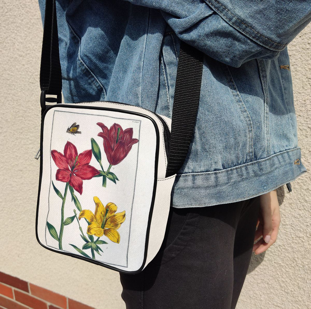 - Torba Listonoszka Lilia czerwona Maria Sibylla Merian z nadrukiem FullPrint inspirowanym sztuką ✨ Kompaktowa torba na ramię, szyta w Polsce ✂️ z trwałego materiału, z możliwością dodania własnego napisu ✍️.