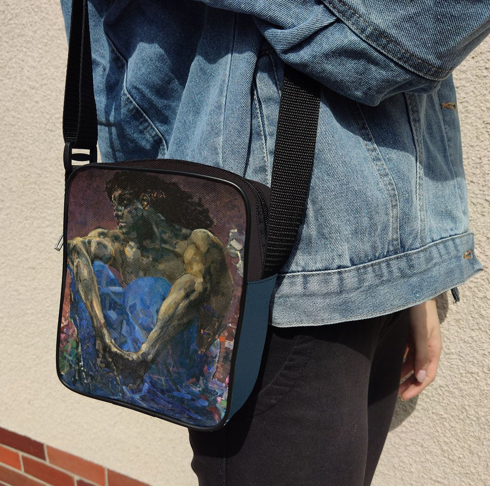 - Torba Listonoszka Demon (siedzi) Mikhail Aleksandrovich Vrubel z nadrukiem FullPrint inspirowanym sztuką ✨ Kompaktowa torba na ramię, szyta w Polsce ✂️ z trwałego materiału, z możliwością dodania własnego napisu ✍️.