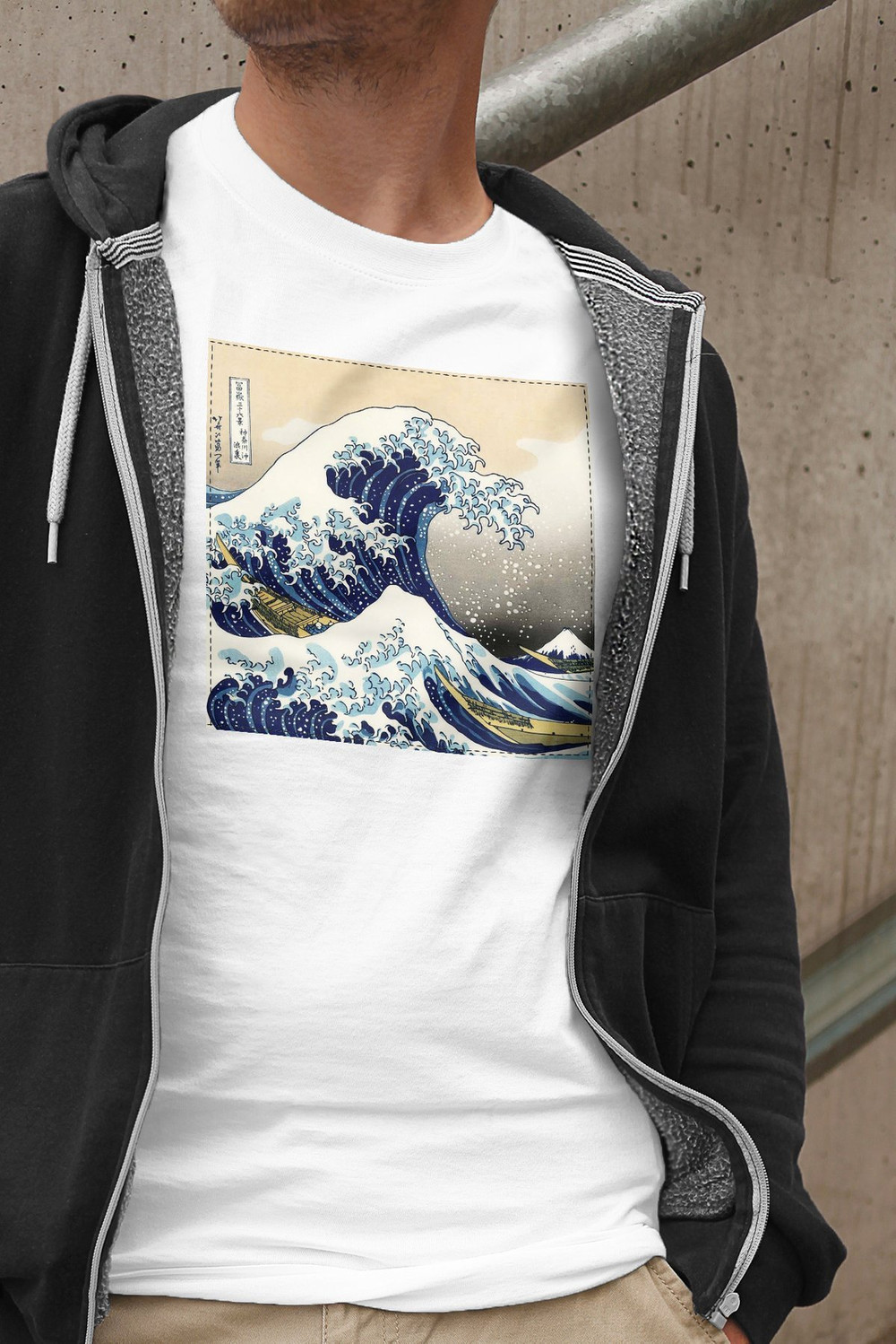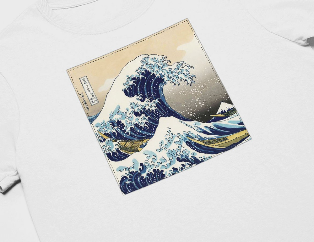 Koszulka z naszywką Wielka fala w Kanagawie Hokusai Katsushika
