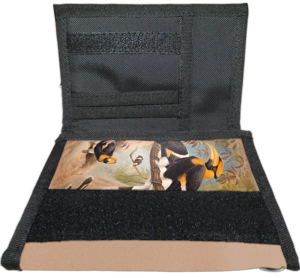 - Portfel zapinany jest na rzep, oraz posiada otwór na łańcuch, lub breloczek np. z kluczami.