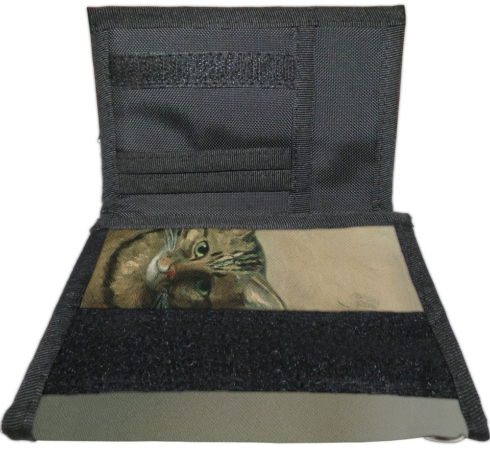 - Portfel zapinany jest na rzep, oraz posiada otwór na łańcuch, lub breloczek np. z kluczami.
