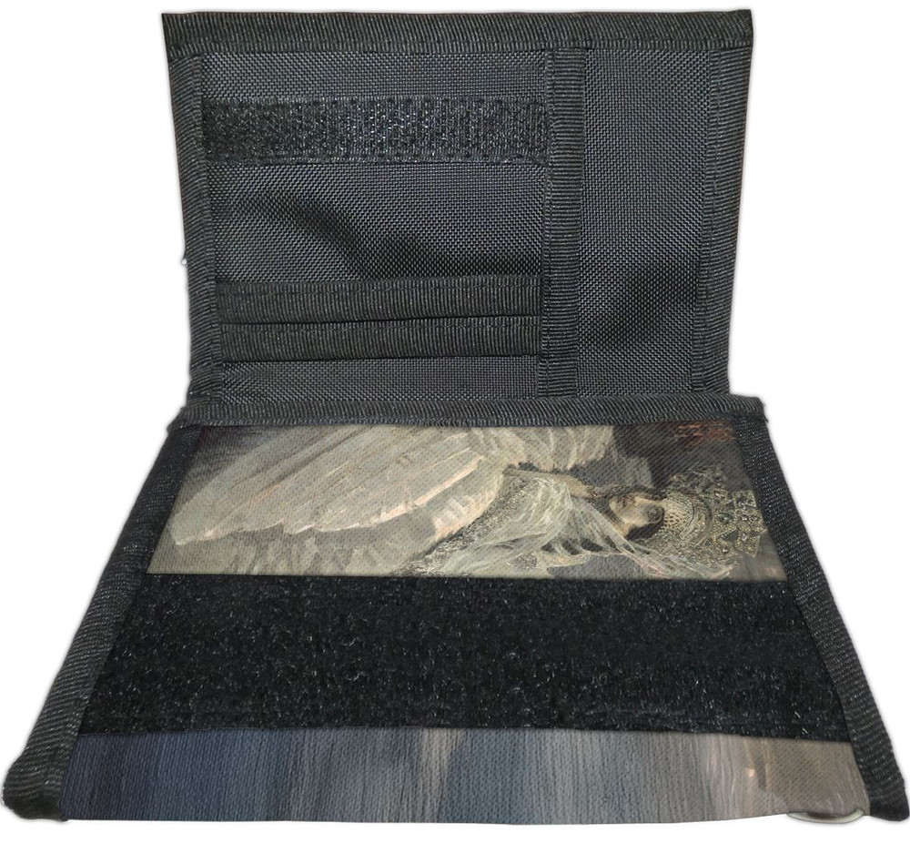 - Portfel zapinany jest na rzep, oraz posiada otwór na łańcuch, lub breloczek np. z kluczami.