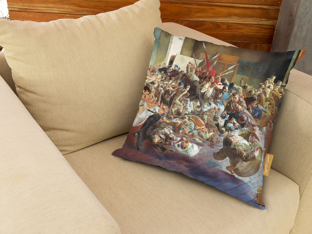 • Poduszka ma rozmiar 40 x 40 cm. Grafika jest po obu stronach poduszki.