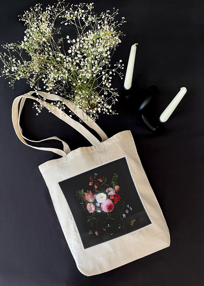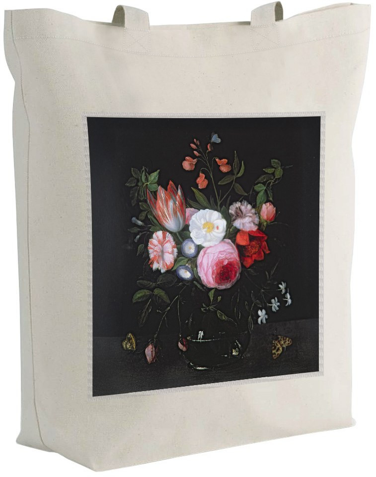 Torba z naszywką Wiosenne kwiaty w szklanym wazonie Jan van Kessel (starszy)