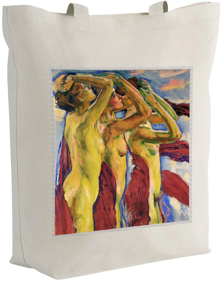- Bawełniana torba z dużą naszywką z motywem sztuki malarskiej.