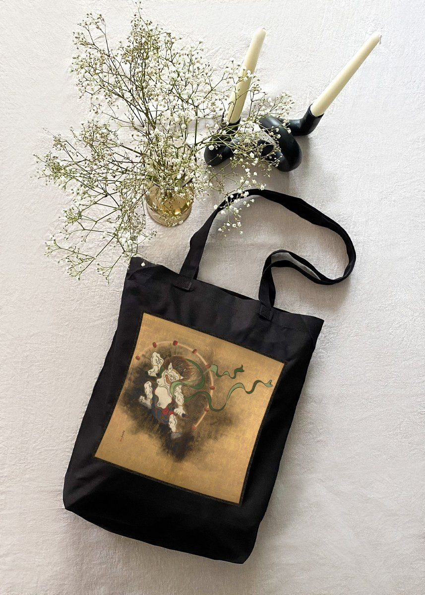 • Bawełniana torba z dużą naszywką z motywem sztuki malarskiej.