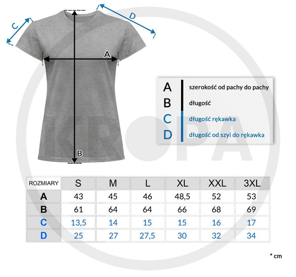 Grafiki w galerii ofert to wizualizacje możliwie wiernie oddające wygląd produktu. Rzeczywisty wygląd może się nieznacznie różnić w zależności od ustawień ekranu. Rozmieszczenie i treść wzoru pozostają bez zmian. Koszulkę należy prać w temperaturze do 40°C, na wolnym wirowaniu, najlepiej na lewej stronie. Nie prasować bezpośrednio po nadruku. Tolerancja wymiarów: +/- 2 cm.