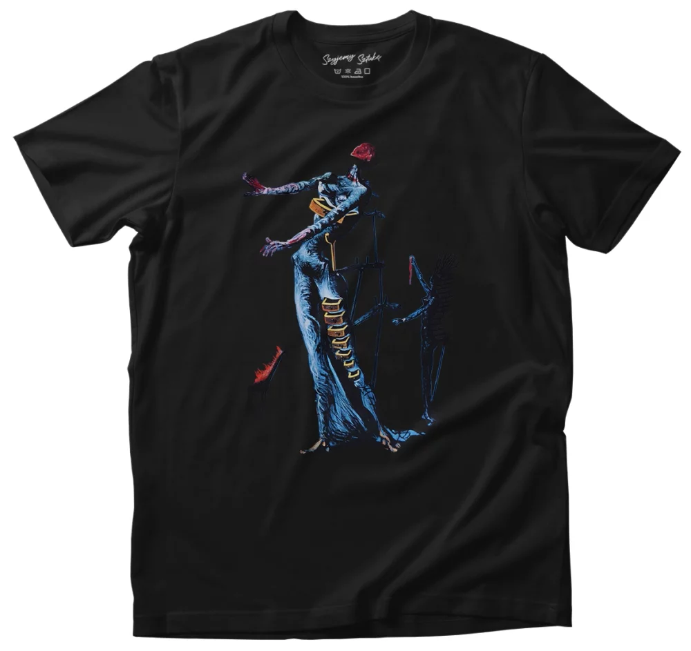 - Koszulka Płonąca żyrafa Salvador Dali w wersji czarna. Stylowa koszulka z nadrukiem dzieła sztuki, łączy wygodę i artystyczny charakter. Idealna propozycja dla miłośników sztuki.