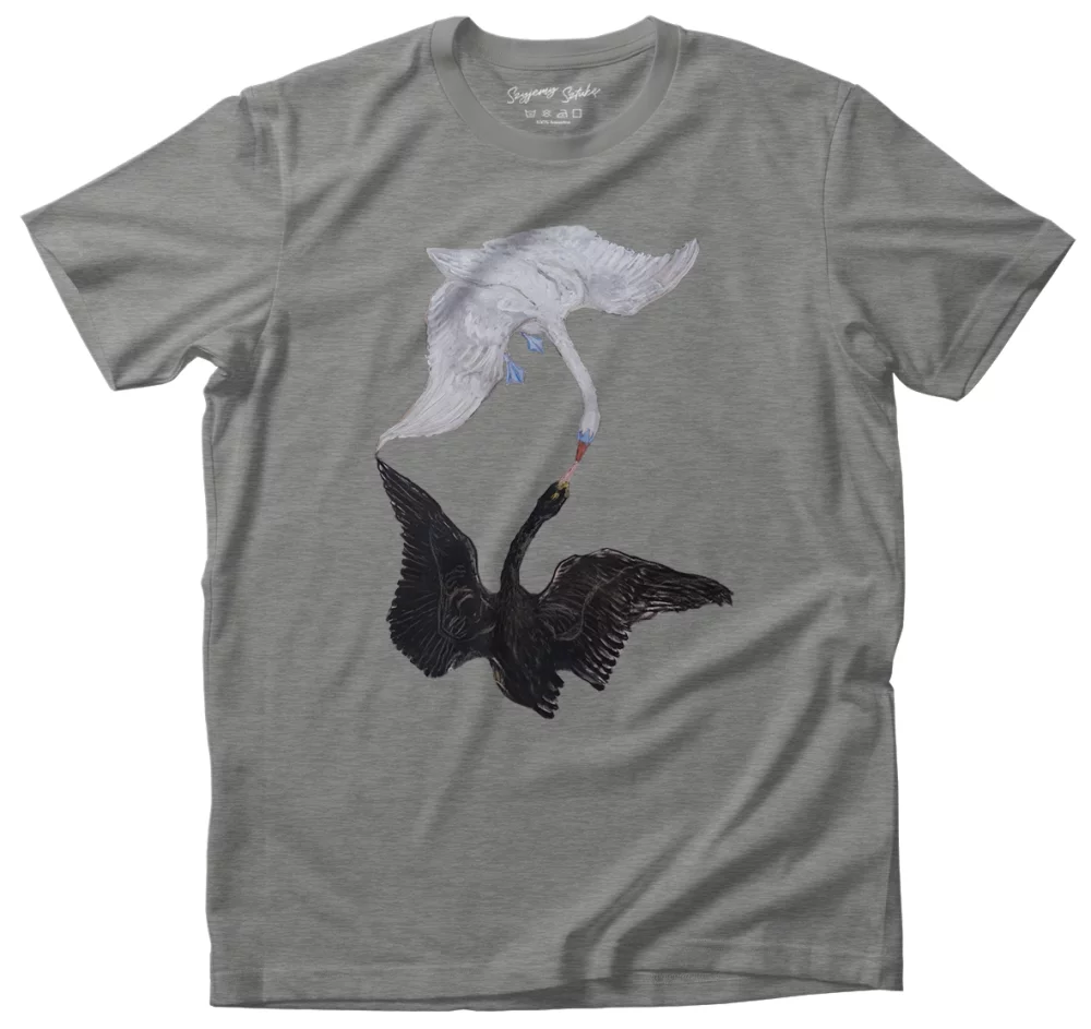 - Koszulka Łabędź, Nr 1 Hilma af Klint w wersji szara. Stylowa koszulka z nadrukiem dzieła sztuki, łączy wygodę i artystyczny charakter. Idealna propozycja dla miłośników sztuki.