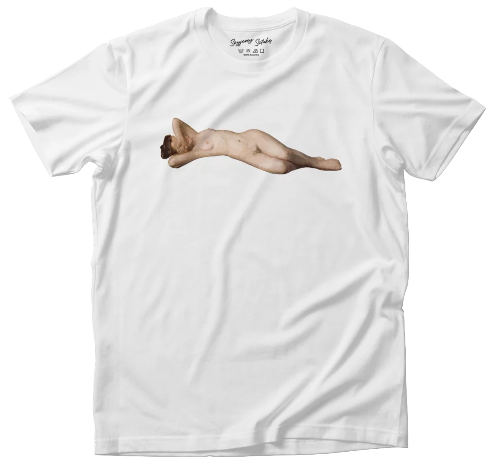 - Koszulka Akt kobiety leżącej Leon Wyczółkowski w wersji biała. Stylowa koszulka z nadrukiem dzieła sztuki, łączy wygodę i artystyczny charakter. Idealna propozycja dla miłośników sztuki.