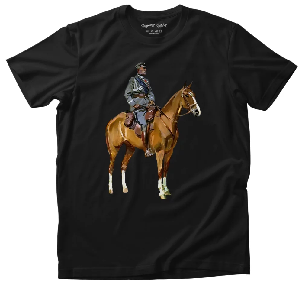 - Koszulka Józef Piłsudski na Kasztance Wojciech Kossak w wersji czarna. Stylowa koszulka z nadrukiem dzieła sztuki, łączy wygodę i artystyczny charakter. Idealna propozycja dla miłośników sztuki.