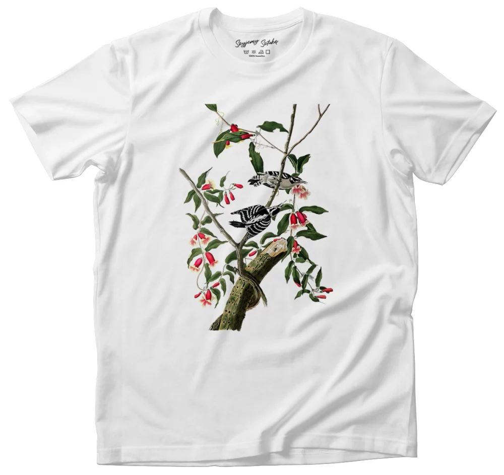 Przedstawiamy koszulkę z nadrukiem Downy Woodpecker James Audubon 🎨