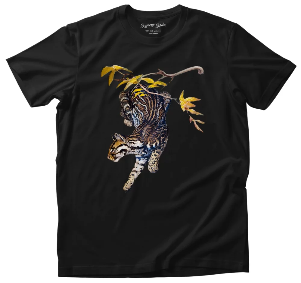 - Koszulka Ocelot Joseph Wolf w wersji czarna. Stylowa koszulka z nadrukiem dzieła sztuki, łączy wygodę i artystyczny charakter. Idealna propozycja dla miłośników sztuki.