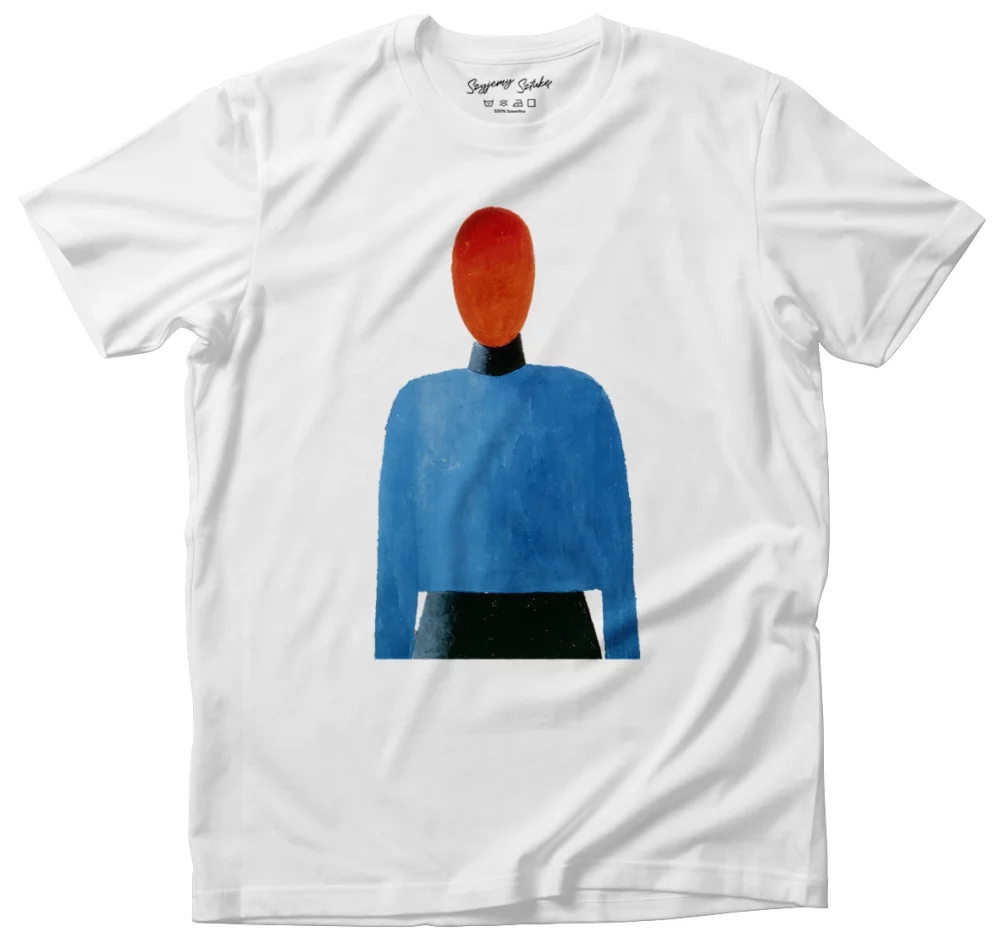 - Koszulka Popiersie kobiety Kazimir Severinovich Malevich w wersji biała. Stylowa koszulka z nadrukiem dzieła sztuki, łączy wygodę i artystyczny charakter. Idealna propozycja dla miłośników sztuki.