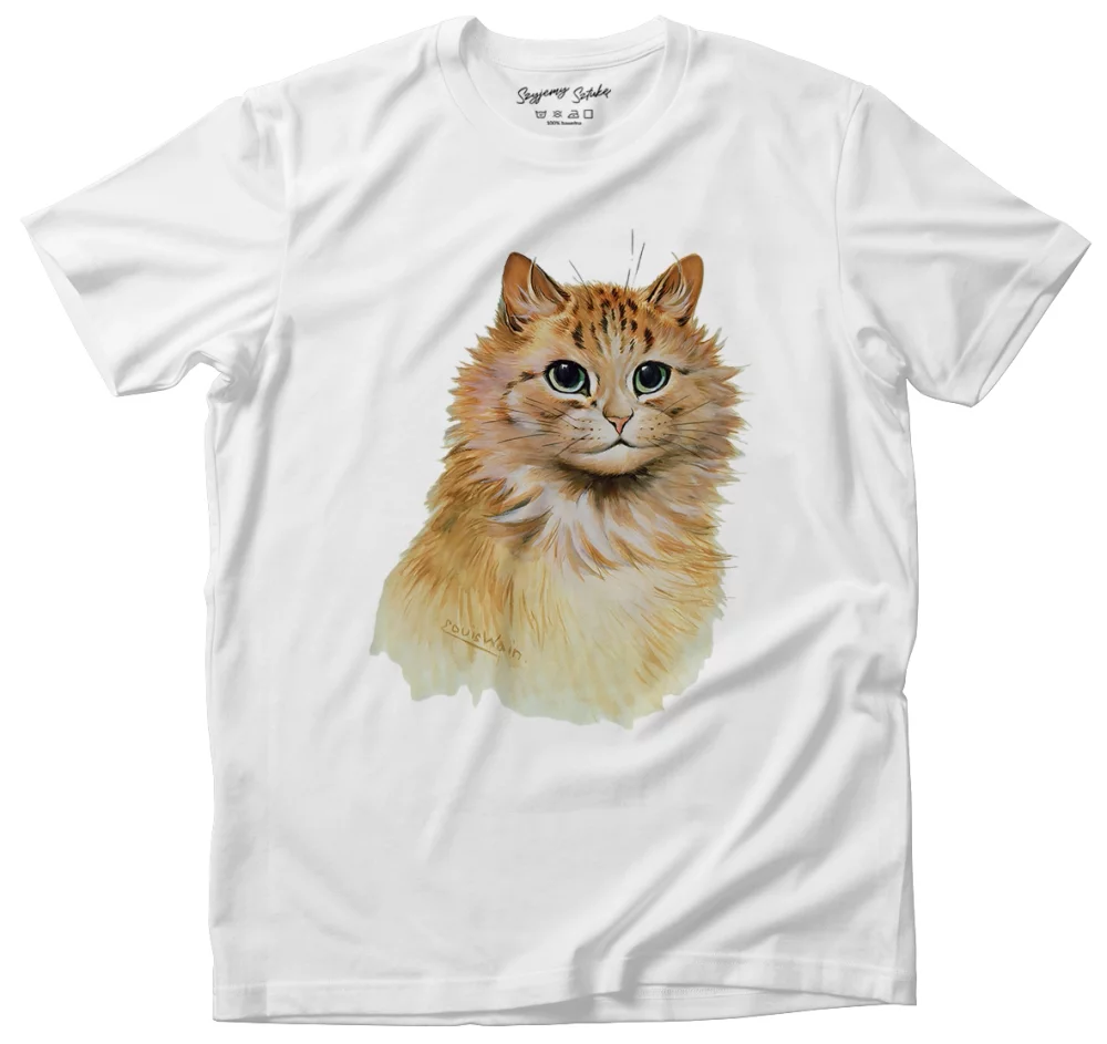 - Koszulka Imbirowy Tom Louis Wain w wersji biała. Stylowa koszulka z nadrukiem dzieła sztuki, łączy wygodę i artystyczny charakter. Idealna propozycja dla miłośników sztuki.