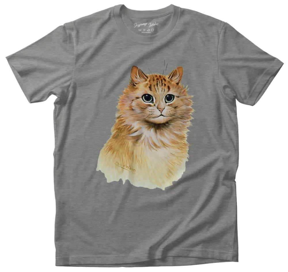 - Koszulka Imbirowy Tom Louis Wain w wersji szara. Stylowa koszulka z nadrukiem dzieła sztuki, łączy wygodę i artystyczny charakter. Idealna propozycja dla miłośników sztuki.