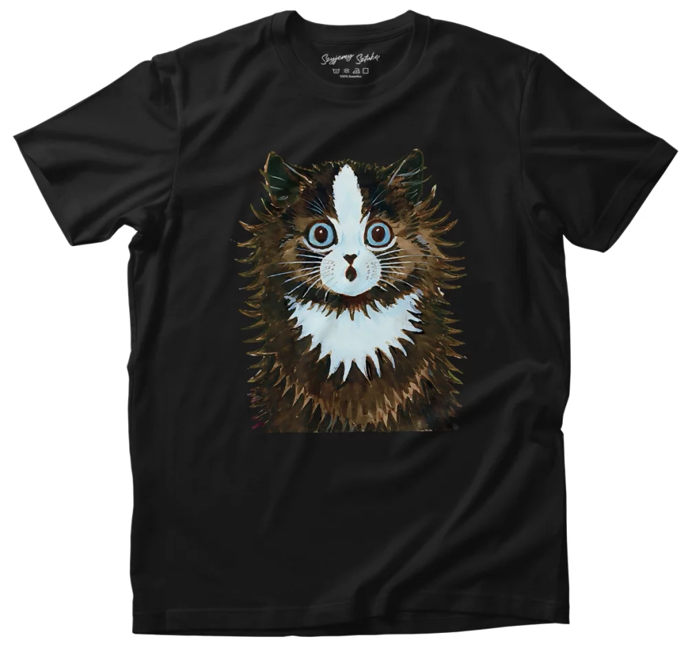 - Koszulka Kot w tęczy Louis Wain w wersji czarna. Stylowa koszulka z nadrukiem dzieła sztuki, łączy wygodę i artystyczny charakter. Idealna propozycja dla miłośników sztuki.