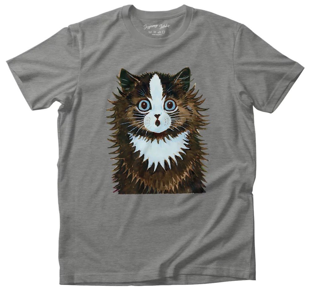 - Koszulka Kot w tęczy Louis Wain w wersji szara. Stylowa koszulka z nadrukiem dzieła sztuki, łączy wygodę i artystyczny charakter. Idealna propozycja dla miłośników sztuki.
