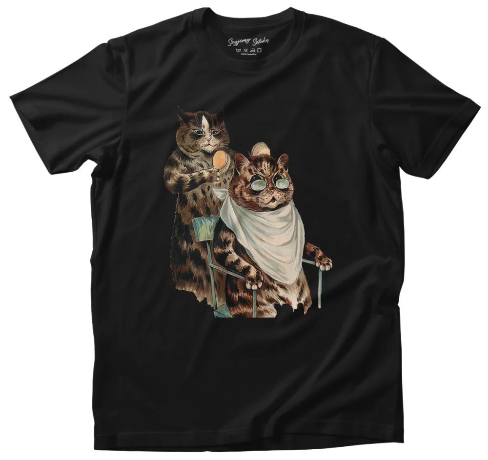 - Koszulka Koty Louisa Waina Louis Wain w wersji czarna. Stylowa koszulka z nadrukiem dzieła sztuki, łączy wygodę i artystyczny charakter. Idealna propozycja dla miłośników sztuki.