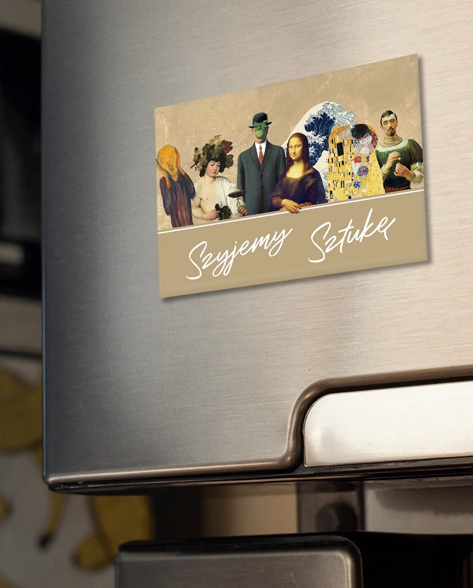 Magnes z motywem Szyjemy Sztukę to praktyczny i stylowy gadżet, który możesz umieścić na lodówce, tablicy magnetycznej lub każdej metalowej powierzchni. Doskonały jako drobny upominek – dodaj go gratis do koszyka w ramach promocji lub kup osobno :)