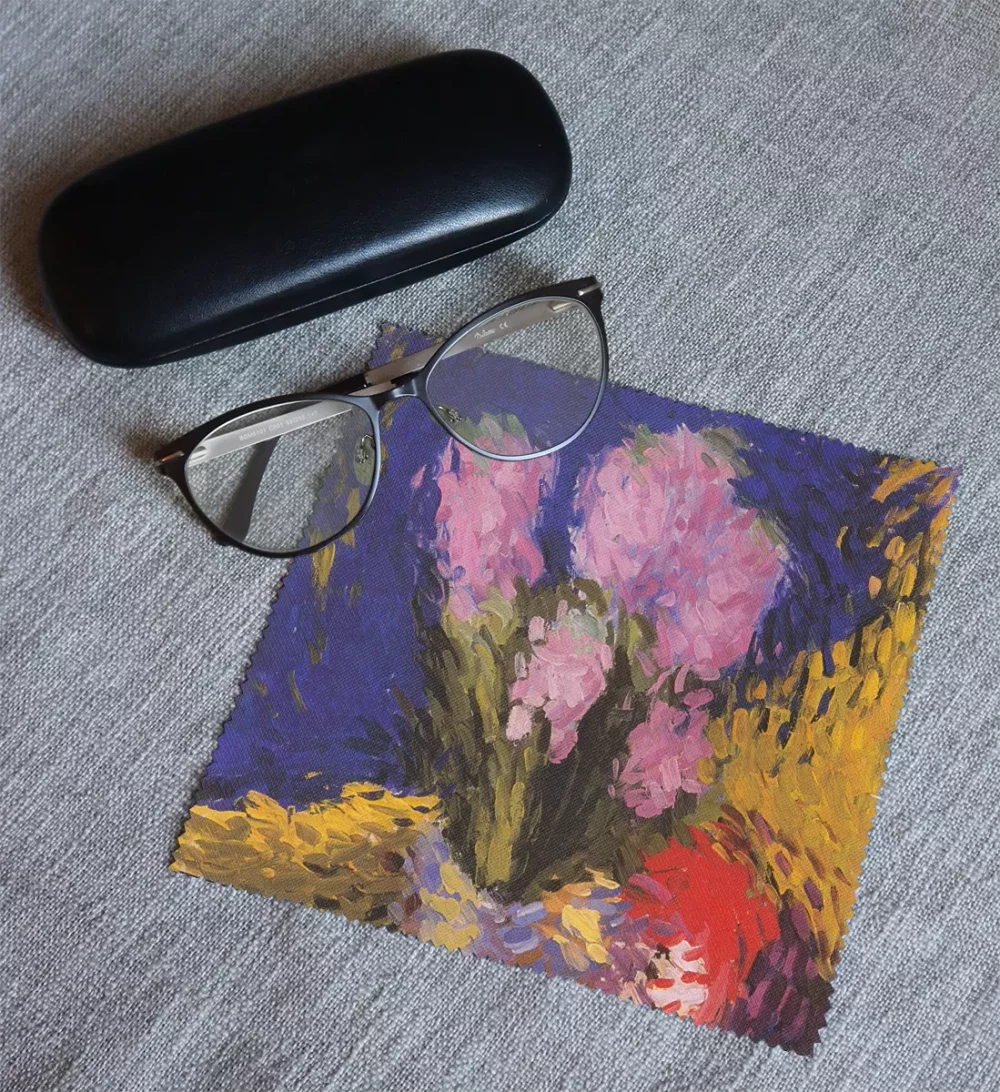 • Ściereczka do okularów 18x17 cm z mikrofibry. Z nadrukiem malarskim! Praktyczna i elegancka.