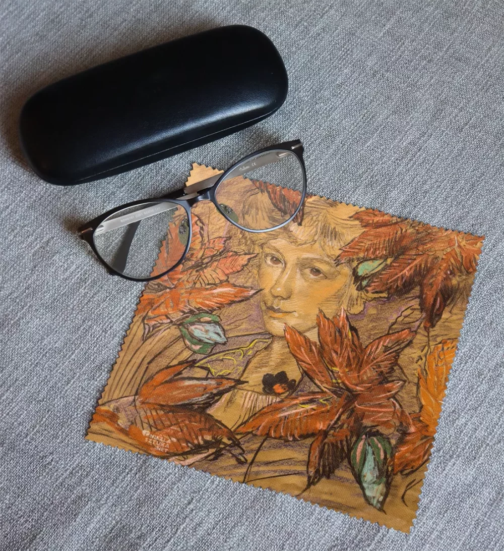 Ściereczka wykonana z wysokiej jakości mikrofibry o wymiarach 18 x 17 cm. Materiał jest przyjemny w dotyku, dość gruby i wyjątkowo skuteczny w czyszczeniu szkieł – zarówno okularów, jak i ekranów smartfonów czy laptopów. Na całości znajduje się trwały nadruk z motywem malarskim, który nadaje produktowi wyjątkowego charakteru 🎨.