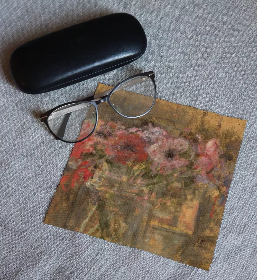 Ściereczka wykonana z wysokiej jakości mikrofibry o wymiarach 18 x 17 cm. Materiał jest przyjemny w dotyku, dość gruby i wyjątkowo skuteczny w czyszczeniu szkieł – zarówno okularów, jak i ekranów smartfonów czy laptopów. Na całości znajduje się trwały nadruk z motywem malarskim, który nadaje produktowi wyjątkowego charakteru 🎨.