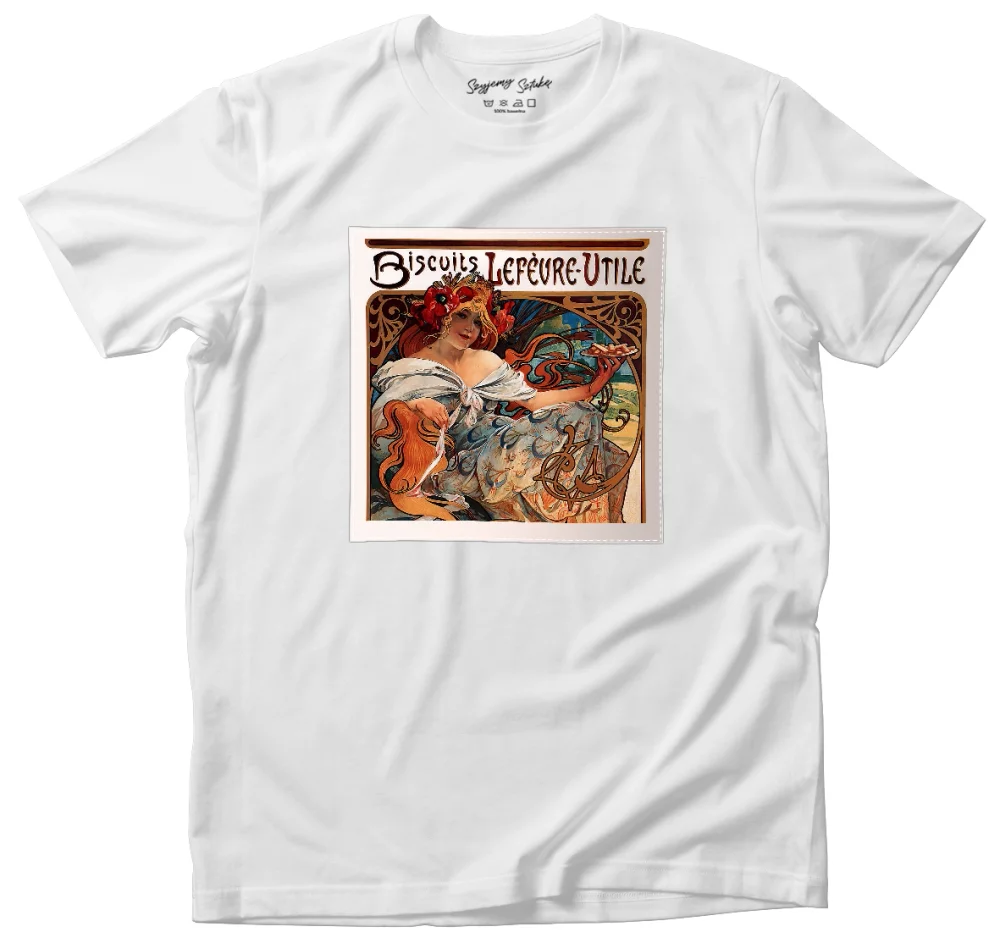 Koszulka z naszywką Biscuits Lefevre Utile Alfons Mucha 👕✨