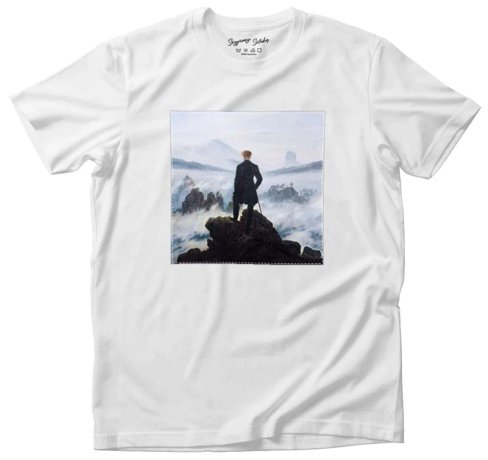 Koszulka z naszywką Wędrowiec nad morzem mgły Caspar David Friedrich 👕✨