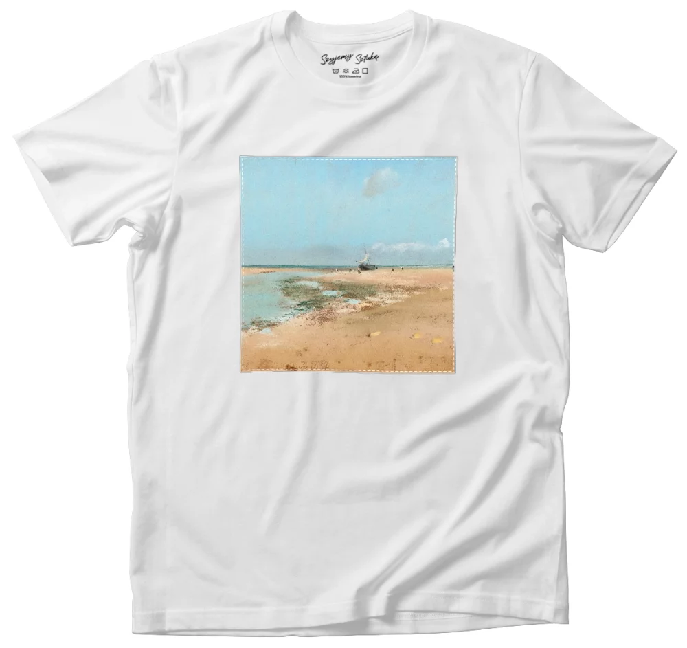 • Koszulka z naszywką Plaża podczas odpływu (ujście rzeki) Edgar Degas Wysoka gramatura, trwałość i unikalny detal nadający charakteru. Każda sztuka szyta na zamówienie – wyjątkowa, solidna i stylowa!
