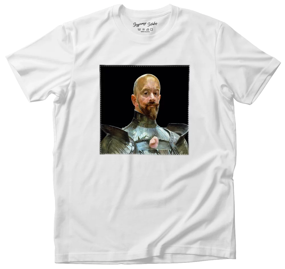 • Koszulka z naszywką Autoportret w zbroi Jacek Malczewski Wysoka gramatura, trwałość i unikalny detal nadający charakteru. Każda sztuka szyta na zamówienie – wyjątkowa, solidna i stylowa!