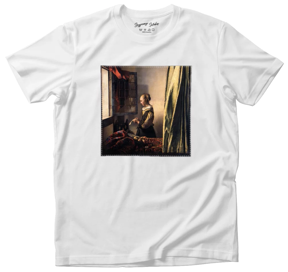 Koszulka z naszywką Dziewczyna czytająca list przy otwartym oknie Jan Vermeer 👕✨