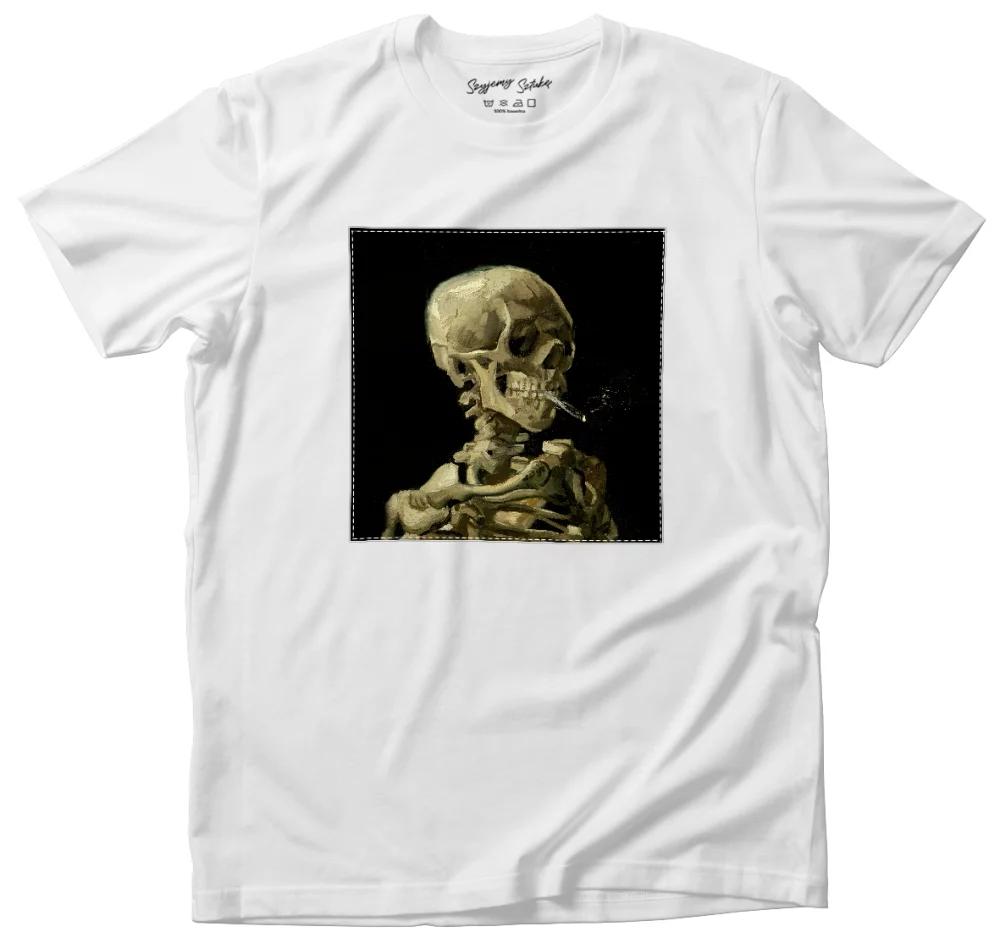 Koszulka z naszywką Czaszka z palącym się papierosem Vincent Van Gogh 👕✨
