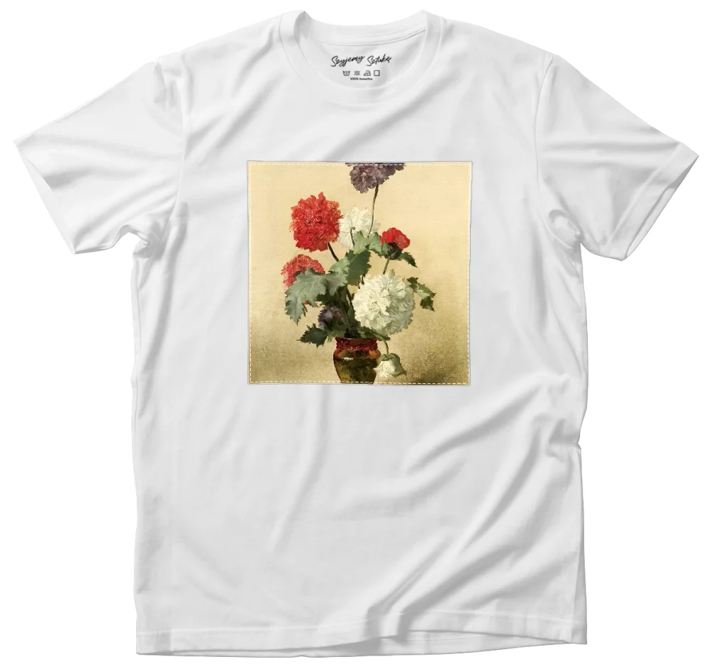 Koszulka z naszywką Peonie (maki) Anna Bilińska-Bohdanowiczowa 👕✨