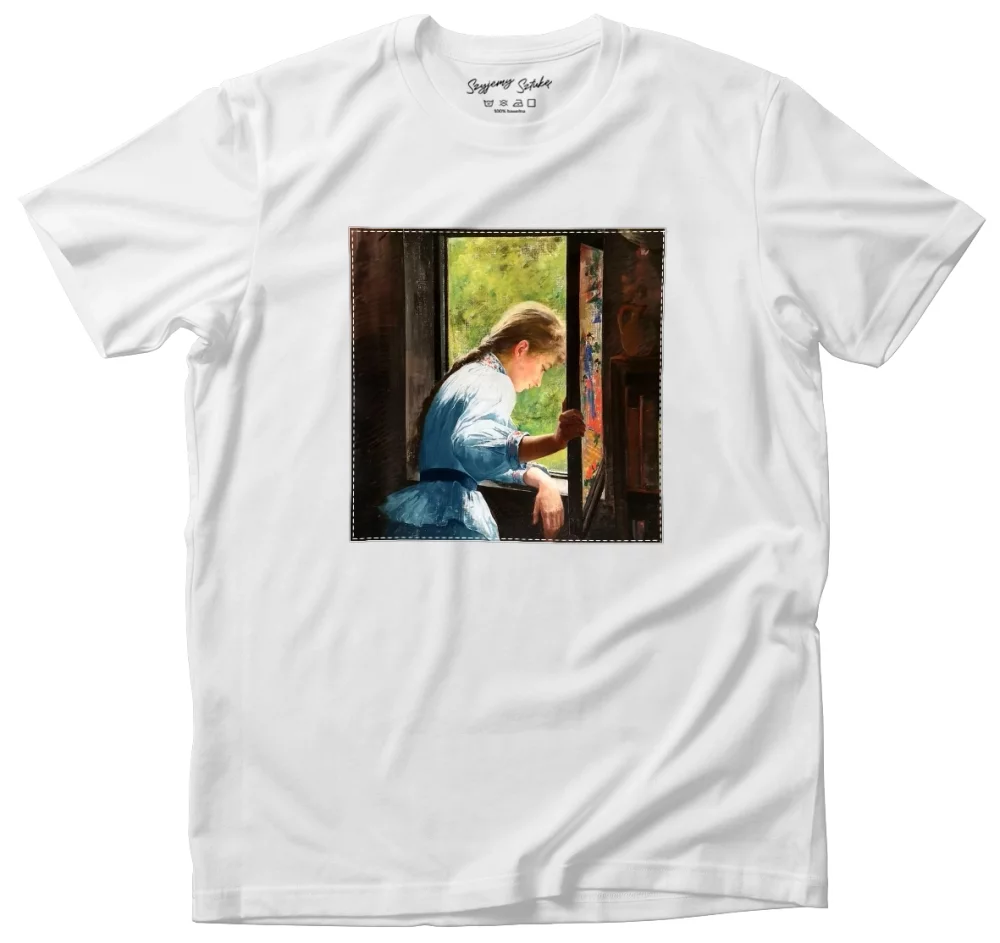 • Koszulka z naszywką W oknie Anna Bilińska-Bohdanowiczowa Wysoka gramatura, trwałość i unikalny detal nadający charakteru. Każda sztuka szyta na zamówienie – wyjątkowa, solidna i stylowa!