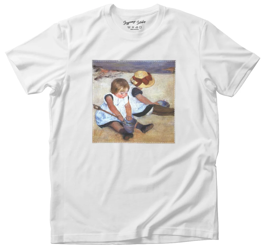 Koszulka z naszywką Dziewczynki bawiące się na plaży Mary Cassatt 👕✨