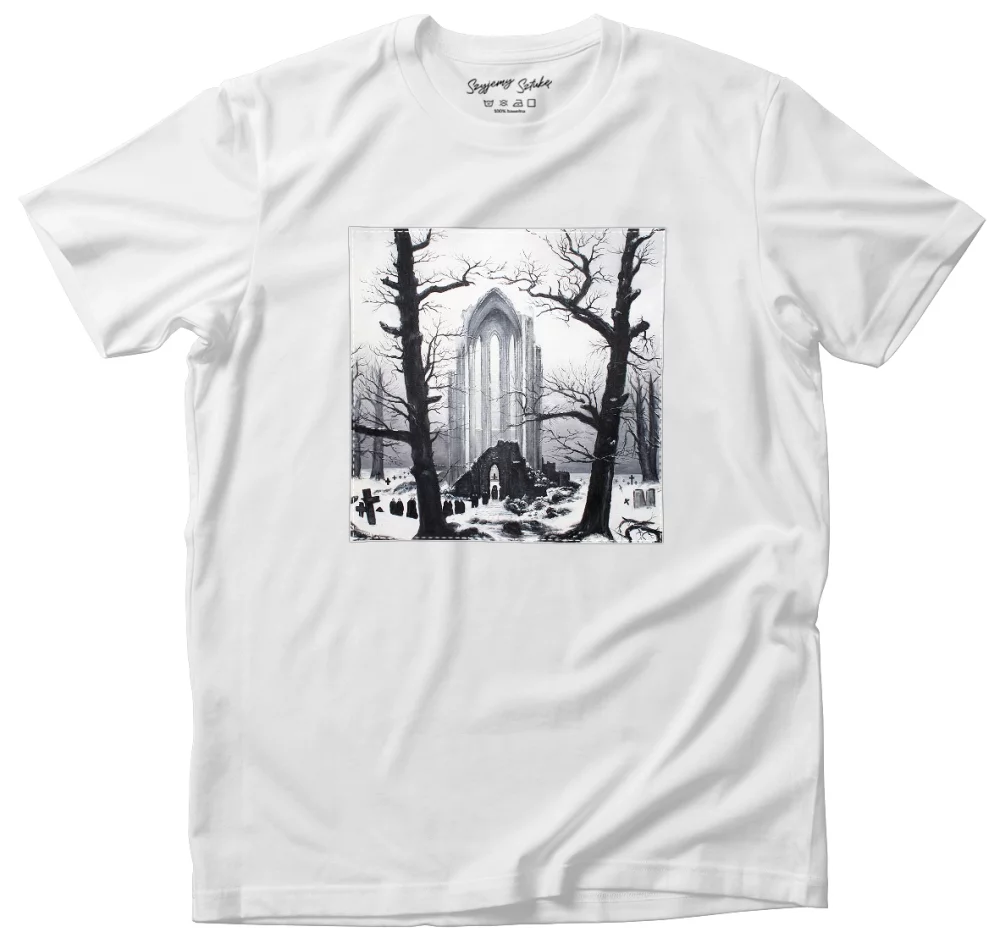 Koszulka z naszywką Cmentarz w śniegu Caspar David Friedrich 👕✨
